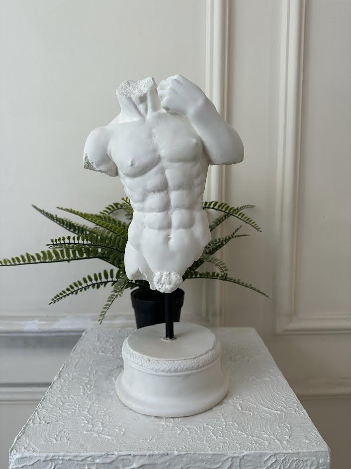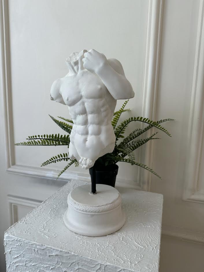 El yapımı olarak alçıdan üretilen bu parça, mermer görünümüyle klasik heykel sanatına saygı duruşunda bulunuyor. Bitmemişliğin verdiği şiirsellik, onu bir dekoratif obje olmanın ötesine taşıyor.